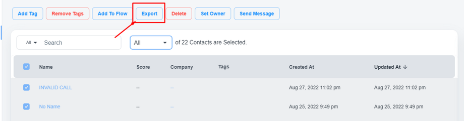 After selecting all contacts, please, click on the top ‘Export’ button to export all contacts